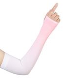 Găng tay chống nắng nữ Naturehike màu trắng với chiều dài phù hợp kéo dài từ mu bàn tay lên đến bắp tay.